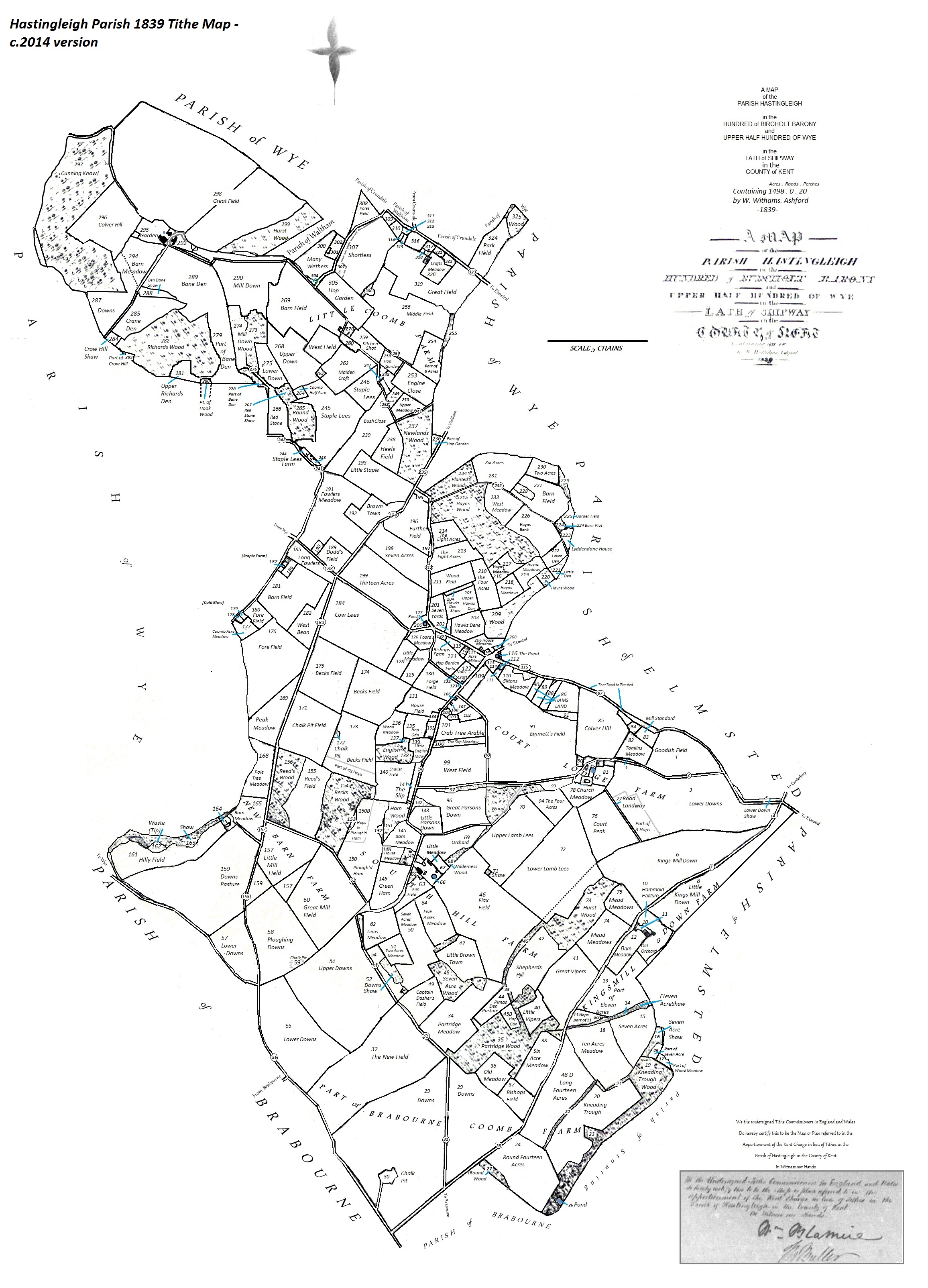 1993 version of the map drawn up by Hastingleigh's own Trevor Wye, I have managed to decypher as much as I can, and taken