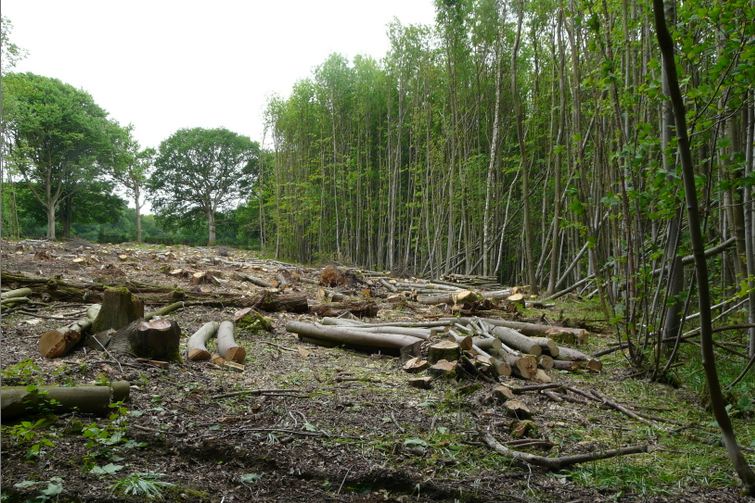 As is necessary in the life cycle of a managed wood, a tract of the trees of Evington Lees have been