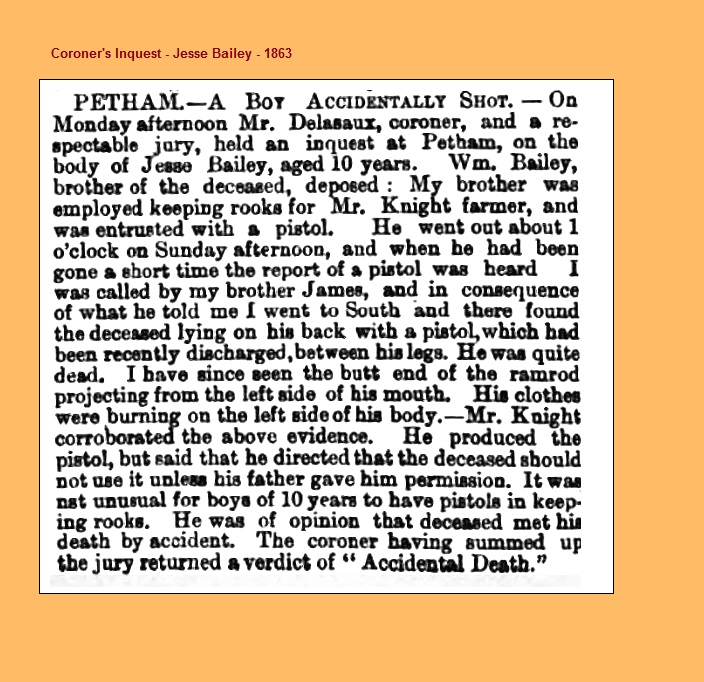Year FORENAME SURNAME AGE NOTES 26 Feb 1800 William HALKES 89 . 13 Apr 1800 Ann CULVER infant son of John and Elizabeth Culver 26 Apr 1800 William RATCLIFT . son of Thomas and Elizabeth Ratcliff 13 May 1800 George BROWNING 86 . 10 Aug 1800 William MUMMERY 2 . 12 Sep 1800 Thomas Simmonds SLADDEN infant of Adisham 23 Sep 1800 John HAYWOOD infant traveller 23 Sep 1800 George WHITE 79 of Canterbury 13 Dec 1800 Thomas SMITH . . 25 Dec 1800 Elizabeth HAYWARD infant son of Arthur and Hannah Hayward 29 Jan 1801 George CLOAKE 70 . 12 Feb 1801 Sarah HARVEY 60 wife of John Harvey 5 Mar 1801 Thomas RATCLIFT 63 . 24 Mar 1801 Susan CRAFTS 82 widow 1 May 1801 Frances HALKES 51 . 10 May 1801 Thomas GAMBRIEL 2 days . 17 May 1801 Mary POTTS 72 . 12 Jun 1801 Susannah AUSTIN 19 m of Lower Hardres 14 Jun 1801 Elizabeth FRIAR 35 of St Mildred's Canterbury 19 Jun 1801 Joshua DRURY 31 . 16 Aug 1801 Thomas SPRATT 80 . 8 Sep 1801 William SLADDEN 64 of Canterbury 20 Sep 1801 Charles HAMMOND 4 m of Stonehouse near Canterbury 8 Oct 1801 Sarah GIBBS 21 . 14 Oct 1801 Robert HUBBARD . . 20 Oct 1801 Frances RICHARDSON 12 wks . 1 Nov 1801 Caroline HARVEY 5 wks of Chartham 4 Nov 1801 Edward SCOTT infant . 14 Mar 1802 Charlotte WALLIS 1 yr 9 m . 21 Apr 1802 Mary RATCLIFT 5 m . 25 May 1802 Dinah BANKS 50 . 18 Jul 1802 Jane WEBB 18 m . 22 Aug 1802 Charlotte BIRCH . of Wye 5 Oct 1802 Thomas TAYLOR . . 10 Oct 1802 Thomas BARTLET 7 m baseborn son of Mary Bartlet 11 Oct 1802 Mrs H.S. WOODVILLE 27 of Cheriton, Bishop Transcrip has from Sandgate 2 Dec 1802 Elisabeth AUSTIN 4 m of Upper Hardres 2 Jan 1803 John HUCKSTEP . . 16 Jan 1803 Sarah Ann & Mary FINCH . twin daughters of Elizabeth 28 Jan 1803 William STRINGER 56 of Birchington Thanet 6 Feb 1803 Ann FOREMAN 74 . 4 Mar 1803 Mary SPRATT 80 widow 23 Mar 1803 Elizabeth FINN . . 8 Apr 1803 John AUSTIN 65 . 10 Apr 1803 Mary PAGE 85 widow 10 Jul 1803 Mrs CLOAKE . of Crundale 8 Jan 1804 Ann RATCLIFT 24 wife of John Ratcliff 21 Feb 1804 Thomas CRAFTS 59 . 4 May 1804 John TAYLOR 30 of St. Margarets Canterbury 10 May 1804 Thomas TERRY 34 . 29 May 1804 Edward SHILLING infant . 8 Jul 1804 Mrs HULKES 50 wife of William Hulkes 20 Jun 1804 Elizabeth BROOKS 10 wks . 15 Aug 1804 Elizabeth RATCLIFT 75 . 30 Aug 1804 Widow SAVAGE 81 . 18 Sep 1804 Thomas SMITH 9 of Bekesbourne 4 Oct 1804 Maria SIMMONS 3 wks . 20 Oct 1804 Elizabeth CRAFTS 88 widow 21 Oct 1804 George POTTS 10 wks . 28 Oct 1804 Sarah WILSON 3 wks . 4 Nov 1804 Richard PAY 14 m . 4 Dec 1804 Thomas HARLOW 54 . 22 Dec 1804 John SPILLETT 4 m . 30 Dec 1804 Susannah BURCHET 36 wife of John Burchett 24 Mar 1805 Widow DRURY 80 of Stelling 31 Mar 1805 George EPPS 4 m . 10 Apr 1805 William NEEVES 4 m . 19 May 1805 Harriet FINCH 5 m . 20 May 1805 The Rev Henry THOMSON 69 of Biddlecomb, Lower Hardres 20 Jun 1805 John FAGG 4 m of Crundale 13 Jul 1805 John RATCLIFT 72 . 25 Jul 1805 Ann NEEME 19 . 13 Oct 1805 Thomas WATERS 5 . 14 Oct 1805 Thomas FORD 74 of Waltham 17 Oct 1805 Stephen FINCH 6 . 1 Dec 1805 Sarah HOPKINS 34 . 15 Dec 1805 Widow HOPKINS 74 . 25 Dec 1805 Mary Ann SLADDEN 4 m . 25 Dec 1805 Amelia Bowen FOLSER . of Upper Hardres 28 Feb 1806 Mrs Mary PRITCHARD 88 of Birchington Thanet 9 Mar 1806 Mrs Sarah CLOAKE 79 . 7 Apr 1806 Richard SLADDEN 63 . 13 Apr 1806 John SOLLY . . 13 Apr 1806 William WILSON 2 m . 30 Apr 1806 Elizabeth CRAFTS 57 . 8 Jun 1806 Ann EPPS 35 wife of Thomas Epps 26 Oct 1806 Charles MATCHAM 9 m . 11 Dec 1806 Mary Ann RATCLIFT 8 n . 5 Feb 1807 John BAKER 74 . 8 Mar 1807 Mary YOUNG 17? . 15 Mar 1807 Elizabeth GILLAM . . 1 Jun 1807 Phoebe VINCER 21 . 14 Jun 1807 Isaac SLADDEN 48 of Canterbury 14 Jun 1807 Mrs WALLIS 24 of Canterbury 21 Jun 1807 Edward SPILLETT 6 wks . 27 Jul 1807 William HARVEY 5 m of Chartham 12 Sep 1807 Thomas SLADDEN 45 of Canterbury 13 Dec 1807 Ann PIERCE . . 20 Dec 1807 Ann RATCLIFT 4 m . 10 Jan 1808 Henry WOOD 45 . 10 Jan 1808 John SLADDEN 3m of Adisham 27 Mar 1808 Amelia HAMBROOK 11 wks baseborn daughter of Barbara Hambrook 27 Apr 1808 Frances HARVEY 4 of Godmersham 8 May 1808 Rebecca HOLLADAY . of Stelling 17 May 1808 Widow HARLOW 84 . 19 Jun 1808 William TAYLOR 52 . 23 Jun 1808 Edward YOUNG 2 . 23 Jul 1808 Rev Thomas RANDOLPH 67 Vicar 14 Aug 1808 Robert WEBB 2 m . 7 Jul 1808 Sarah SLADDEN 72 . 13 Sep 1808 Mary Ann WILSON 5 . 18 Sep 1808 Phoebe GODDEN 38 of Canterbury 19 Feb 1809 George HAWKES 85 . 23 Mar 1809 Jane WEBB 74 . 22 Apr 1809 Ann THOMPSON 70 . 4 May 1809 Stephen PARTRIDGE 31 . 9 May 1809 Little BOURNE 77 . 23 May 1809 John COOKE 39 . 24 May 1809 Sarah SPILLETT 29 . 26 Jul 1809 Charlotte WILLIAMS 8m . 5 Aug 1809 Frances RICHARDSON 6 wks . 25 Aug 1809 Harriet FINCH 12 m . 25 Aug 1809 Henry SMITH 19 a stranger 27 Aug 1809 William PIERCE 9 . 11 Sep 1809 William CHRISTIAN 83 . 17 Sep 1809 Elizabeth RATCLIFFE 28 . 22 Oct 1809 Edward GILHAM 40 . 21 Nov 1809 Thomas THOMSETT 12 m . 2 Jan 1810 Susannah BIRCH 65 . 7 Jan 1810 Elizabeth BROOKS 35 of Waltham 18 Jan 1810 George COLLYER 5 wks . 12 Mar 1810 Sarah COOK infant pauper 12 Mar 1810 John DANIELS 80 . 12 Mar 1810 Hannah WRIGHT 47 of Dover 15 Mar 1810 Ann JOHNSON 27 . 25 Mar 1810 Mary GOLDUP infant . 5 Apr 1810 James BAKER 30 a traveller 19 Apr 1810 Thomas SOLOMAN 35 a stranger 19 Apr 1810 William COOK 2 . 22 Apr 1810 Ann BRIGS 27 . 30 Aug 1810 Elizabeth HARVEY 35 of Ospringe 30 Aug 1810 James HARVEY 18 wks of Ospringe 2 Nov 1810 Placey TAYLOR 38 . 12 Apr 1811 Jane NEAME 96 . 28 May 1811 Thomas SIMMONS 75 of Chartham 30 Jun 1811 Frances SCOTT 10 of Waltham 18 Aug 1811 John CLOKE 29 of Canterbury 1 Oct 1811 James WEBB 45 . 19 Dec 1811 Sarah WARD 20 . 9 Feb 1812 Stephen ADAMS 49 of Nackington 16 Jun 1812 Thomas POTTS 76 . 19 Jul 1812 Ann TYRELL 79 . 9 Nov 1812 Barbara HAYWARD 20 . 20 Dec 1812 Mary TAYLOR 85 of Canterbury 26 Dec 1812 William MORRIS 37 . 30 Dec 1812 William BALDOCK Esq 65 . 28 Jan 1813 Thomas STACE 25 . 11 Feb 1813 John WILLIAMS 30 of Waltham 20 May 1813 Elizabeth Ann CLOKE 23 of Chilham 28 Jun 1813 Elizabeth BALDOCK 79 . 9 Jul 1813 Mar