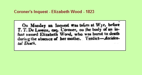 Coroner's Inquest 1823 Elizabeth Wood - an infant [Click]