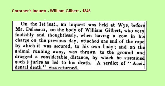 Born at Wye and always lived here 11 Feb 1801 Ann Swaffer 27 Suddenly 4 yrs in Wye
