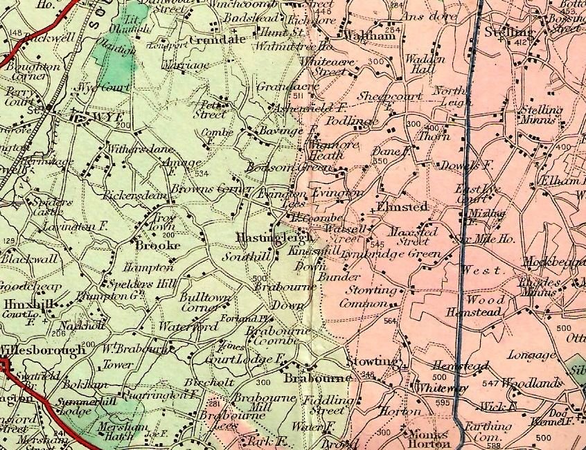 (Elmsted also has borders with Lyminge, Stelling Minnis, Stowting, Waltham and Wye) Stowting - to the South West