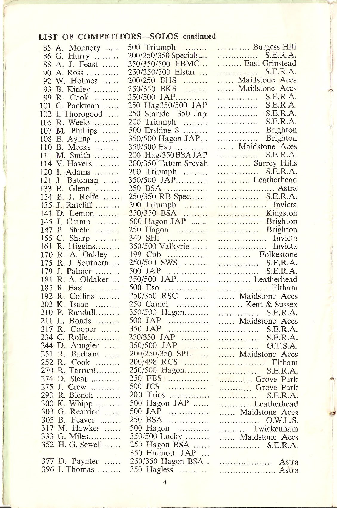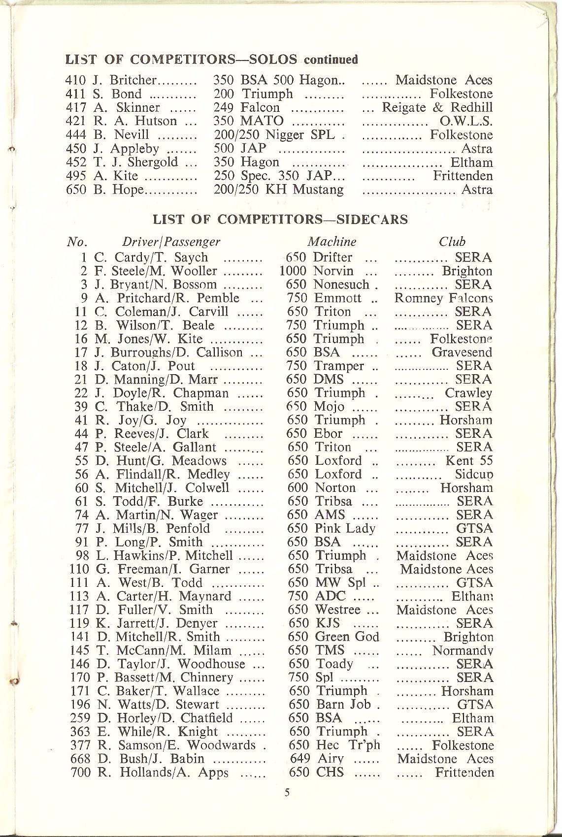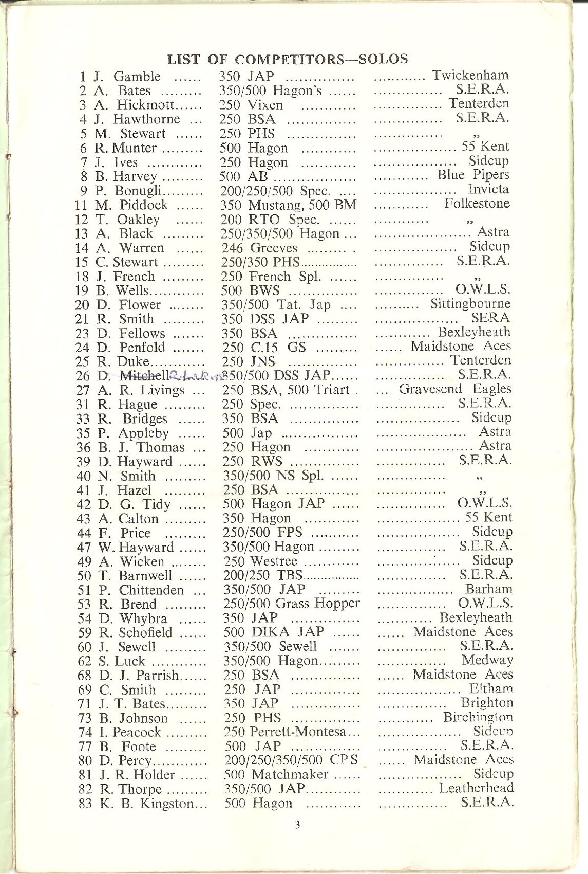 Cow Lees Meadow was hired out to the South East Riders' Association SERA for