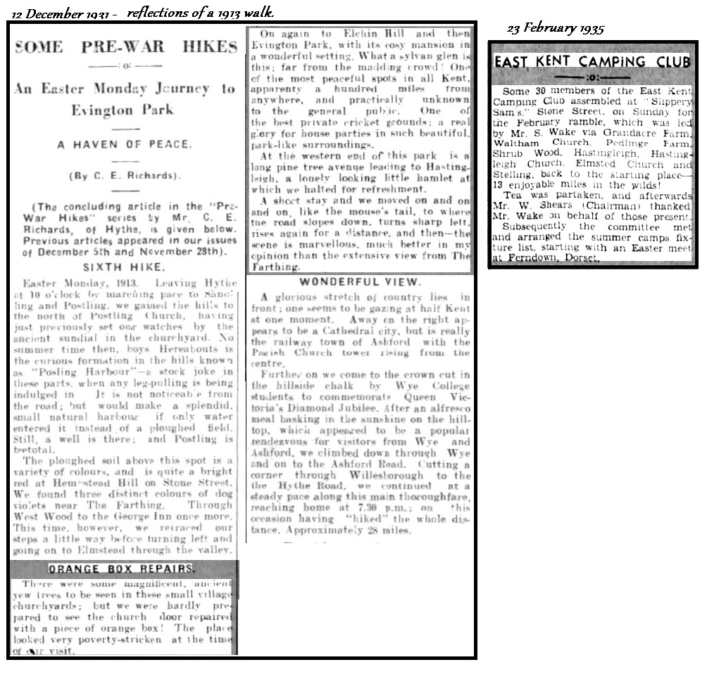 Here are a couple of newspaper reports of 20th century Camping and Hiking in the parish.